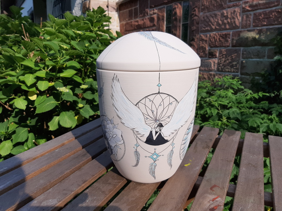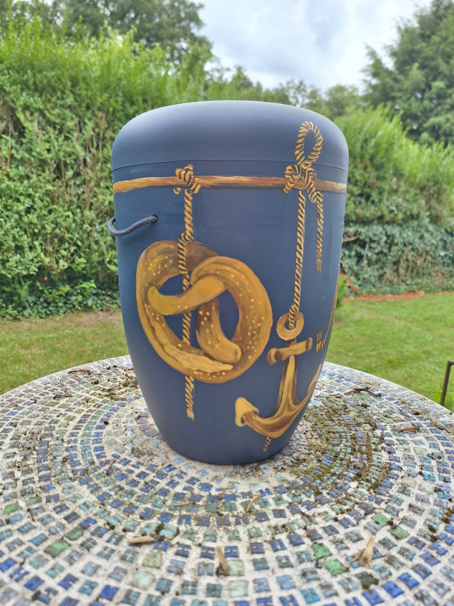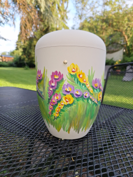 Ich bemale die Urne Ihrer Angehörigen ganz individuell auf Ihren speziellen Wunsch hin an. Sehen Sie sich hier einfach einmal um. Anbei ein paar Beispiele.